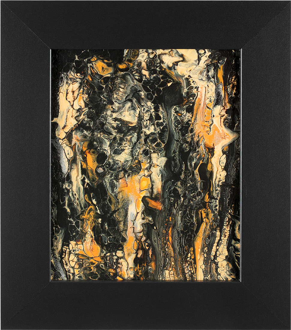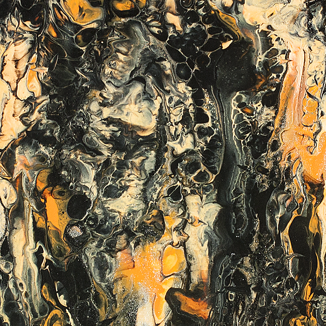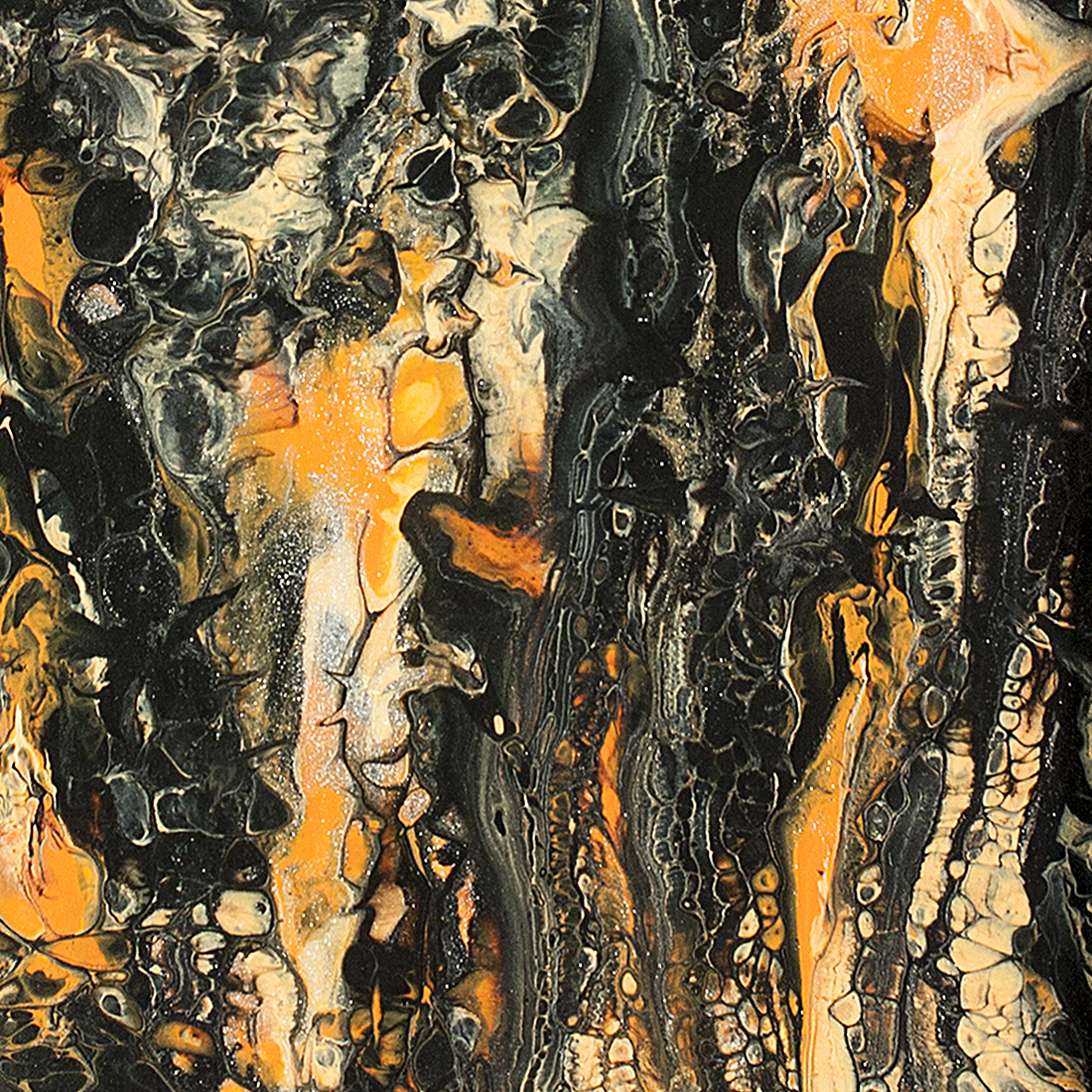 Trick or Treat was created using acrylic paint, pouring medium, silicone oil, and polyurethane on canvas board.