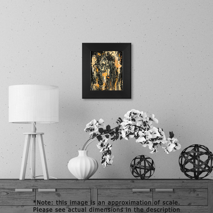 For this piece, I drew my color inspiration from my favorite holiday, Halloween. I used 2 different orange paints, one of which was metallic, a touch of yellow, and black. There was another paint that just added some shimmer to the piece but had no actual color.  The shimmer effect is very subtle but lovely for those who take a closer look (not visible in the pics).